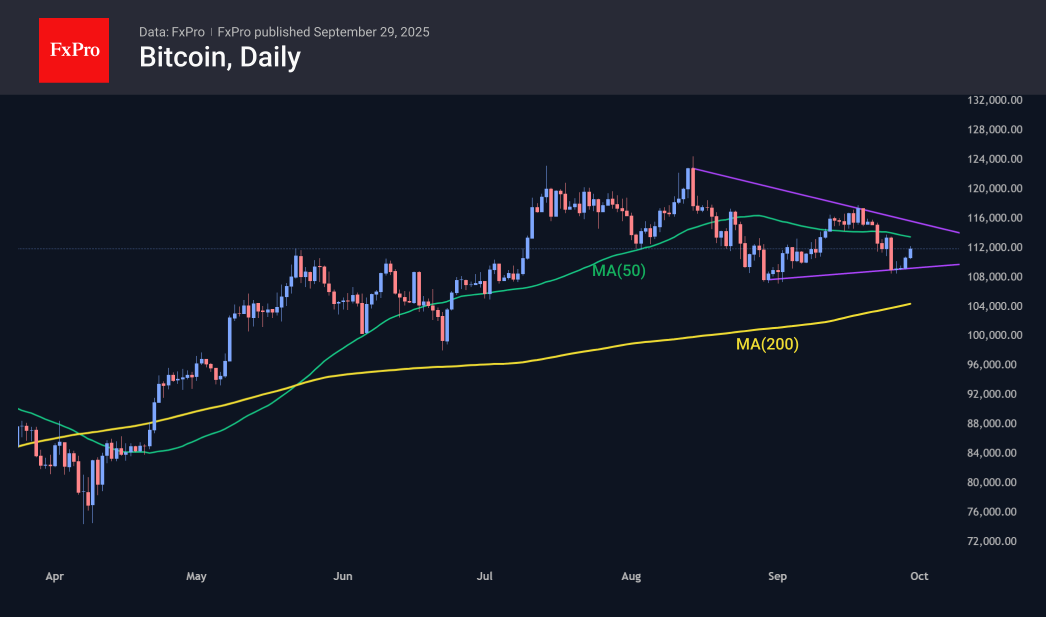 At the end of last week, Bitcoin found support at $109K. It was bought at roughly the same levels as the end of August and even slightly higher, which is positive for the bulls. On the other hand, September’s local high is lower than the previous one, which generally indicates a decrease in volatility and a stronger movement towards a breakout beyond the $108-118K range. Movements within the range can give many false short-term signals.