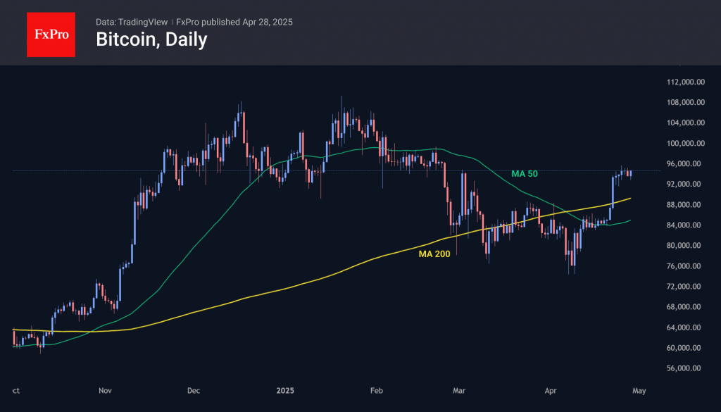 QCP Capital noted that the bitcoin options market is currently dominated by call options with $95,000 strike prices for the end of April and May, suggesting that risk appetite remains strong. Meanwhile, President Trump softened his stance last week, reassuring investors about Fed Chairman Powell’s position and announcing plans to reduce tariffs on Chinese goods.