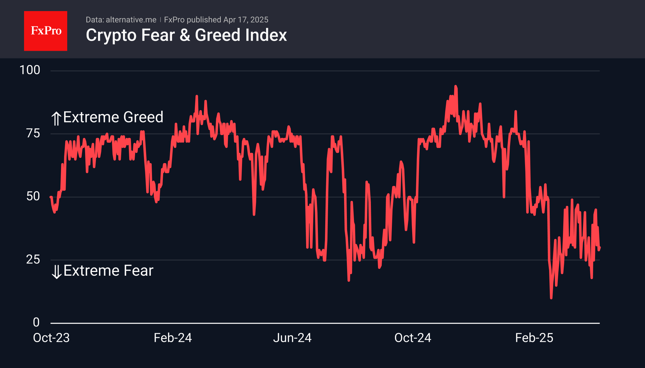 The sentiment index is gradually moving out of the ‘extreme fear’ zone and consolidating in the ‘fear’ area. This is a good signal that the correction may be over, but there are still not enough catalysts for a full-fledged rally.