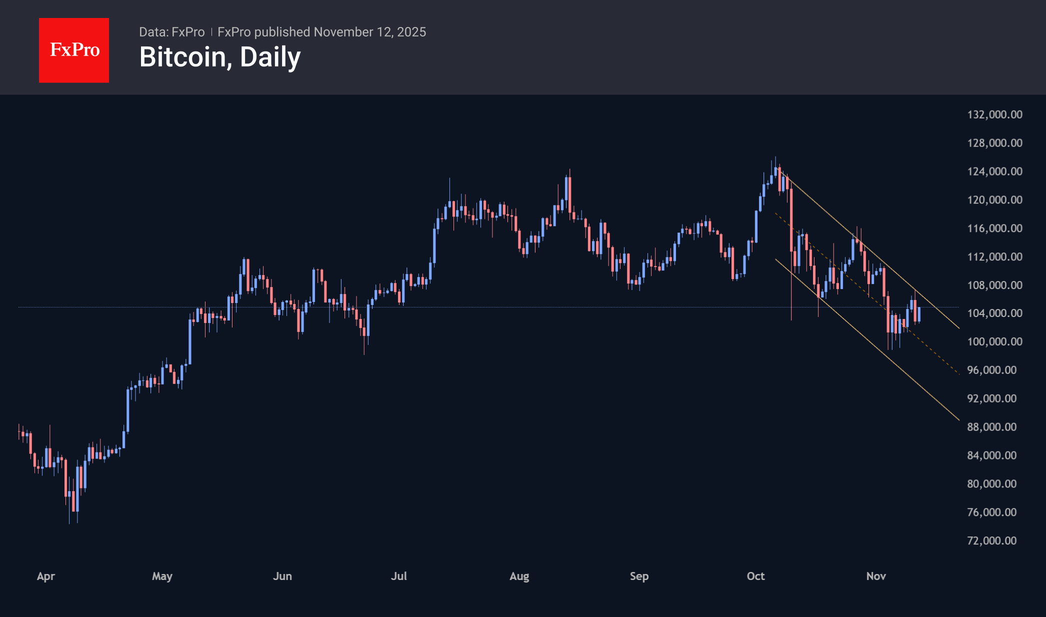 Bitcoin recorded a local low of $102.5K at the start of the day, later rising above $103K. In the short term, BTC bulls are attempting to form a bottom, but the acceleration in growth is being countered by heavy selling, and the overall picture aligns with a larger downtrend.