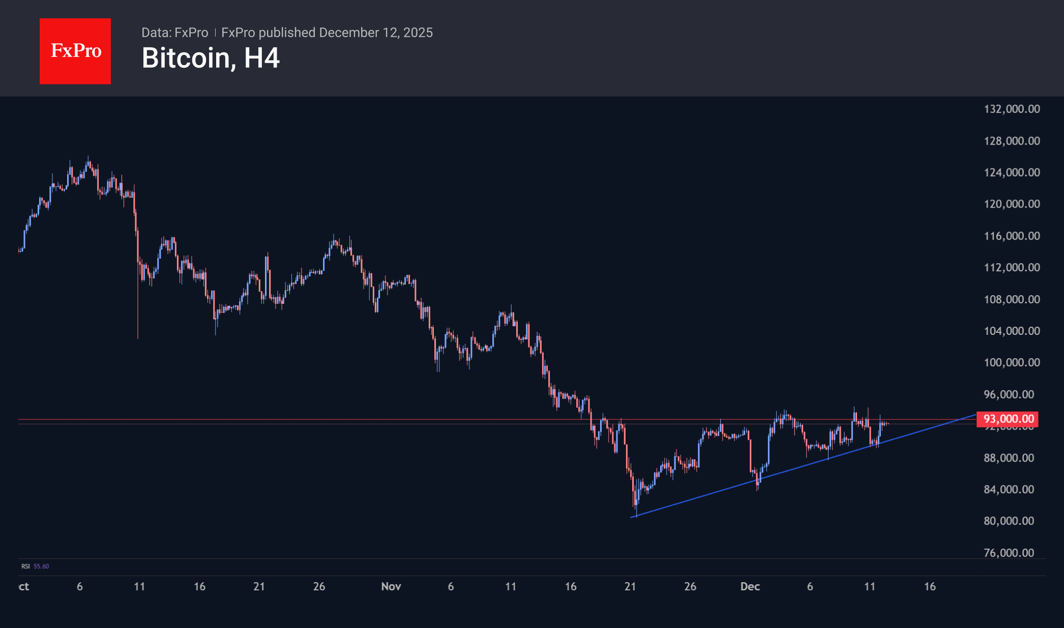 The crypto market capitalisation gained about 2%, returning to the $3.14T level. The good news is that the latest local low fits into the upward trend of higher lows since the end of November. The bad news is that resistance near $3.20T has remained in place all this time. The spring is compressing, promising an end to the relative calm in the next few days. The market will need to decide on a direction for the coming weeks.