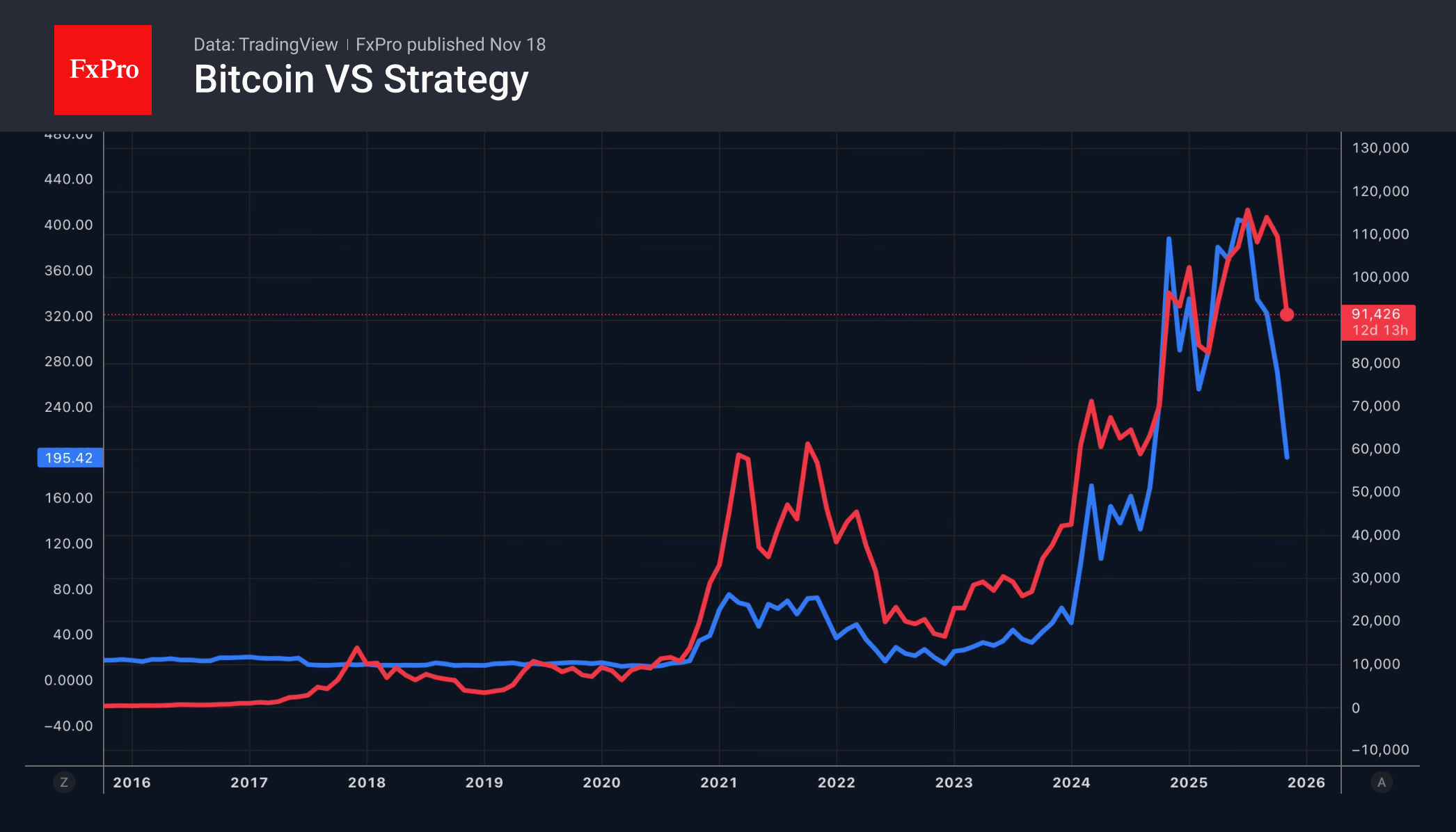 The transition of Bitcoin to a bear market has created problems for institutional investors. In mid-November, Strategy’s capitalisation fell below the value of the bitcoins it had acquired. However, while Michael Saylor’s company is using the pullback to buy, other corporate treasuries are faced with the choice of taking losses or selling.