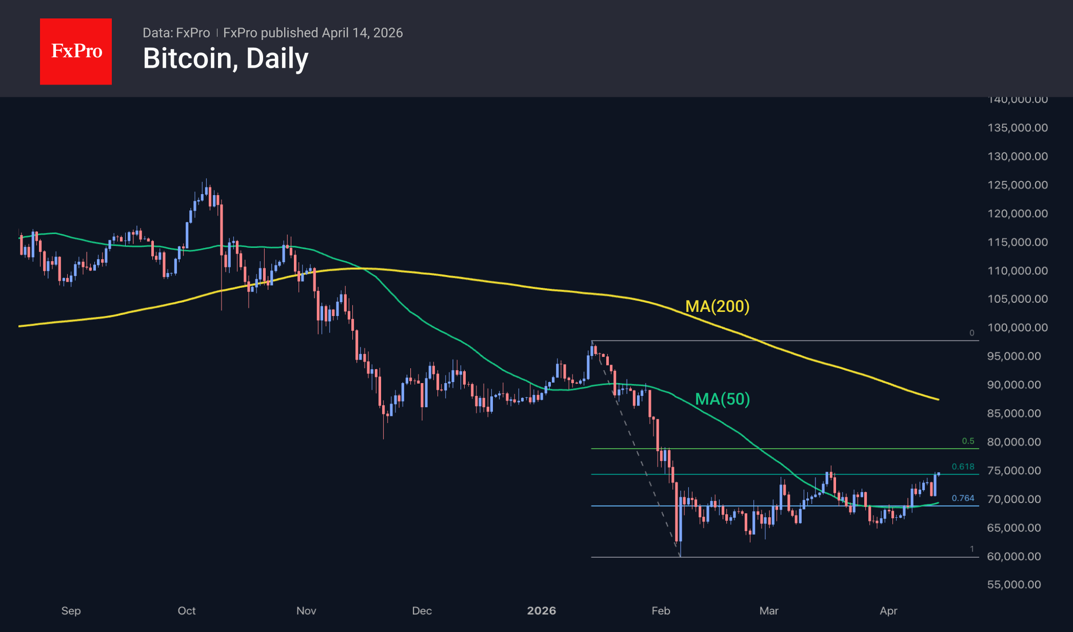 Bitcoin’s price has surpassed $74K, returning to last month’s highs and beginning an assault on the 61.8% Fibonacci retracement level from the January–February slump. A victory for the bulls in this battle will pave an easier path to the $87K–$90K range, where the 200-day MA and the November–January support are located. Optimism in global markets increases the chances of reaching these heights in the coming days, but before rising above $90K, Bitcoin may require a lengthy period of consolidation and cooling off.