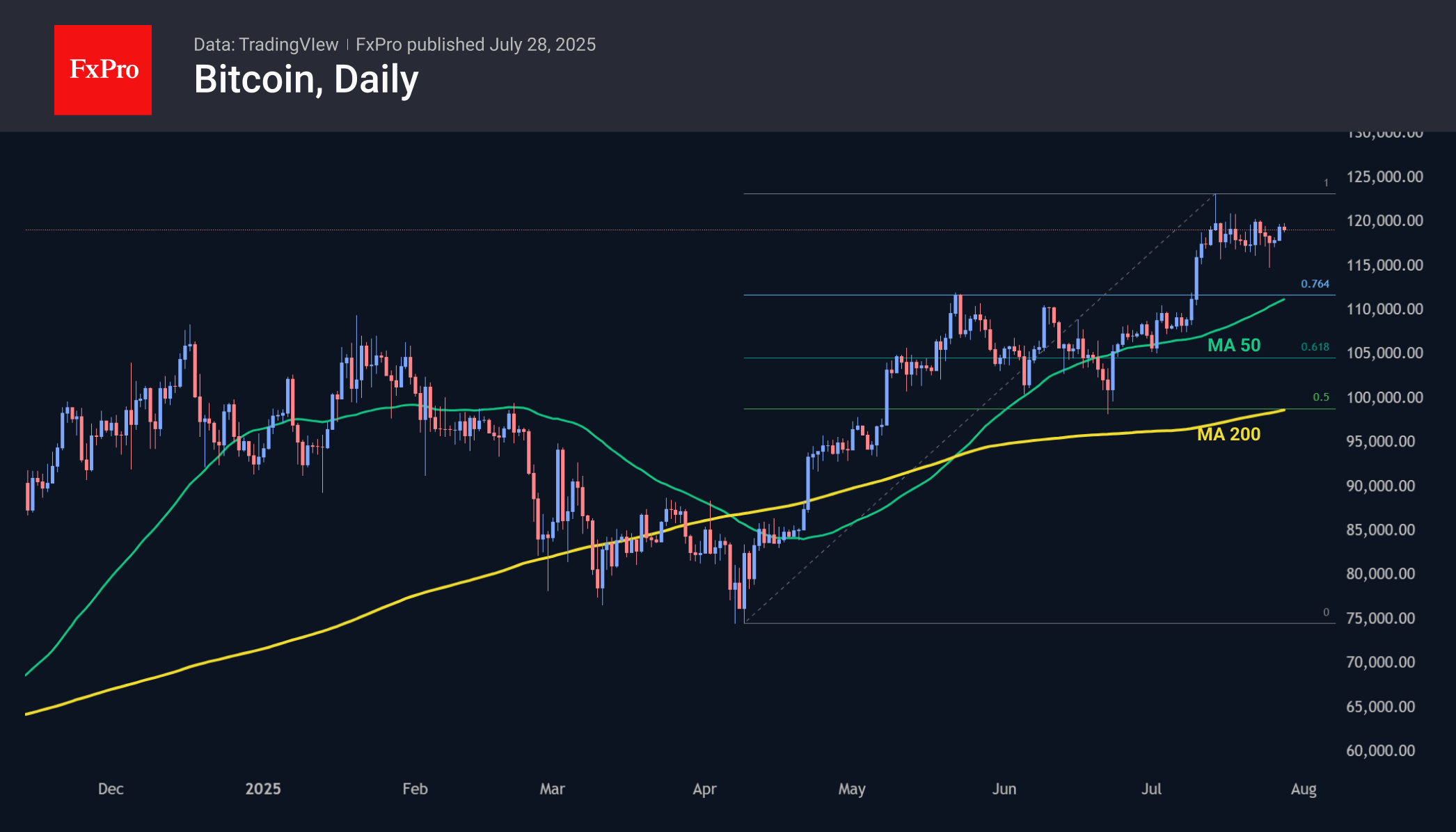 Bitcoin, which fell alarmingly on Friday morning, still managed to remain within the range of the last couple of weeks — $116.5- $119.5k. The new week begins with an assault on the upper limit of the range. Breaking through $120K could create a speculative wave of buying.