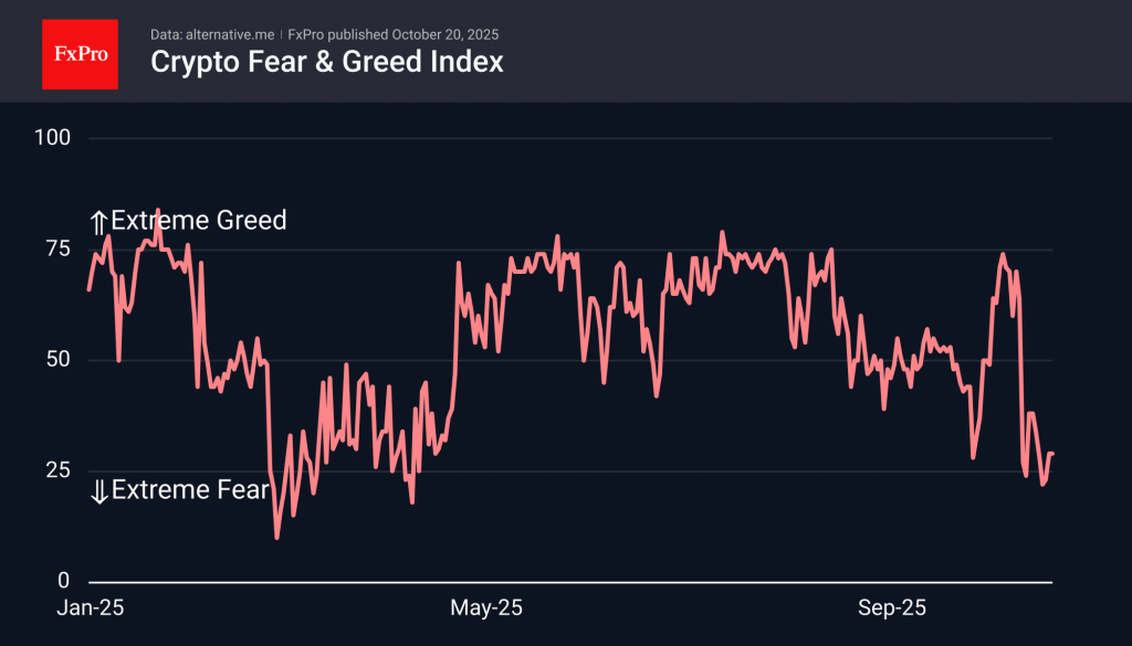 The cryptocurrency sentiment index is at 29 (fear) for the last two days, with a dip into extreme fear on Friday and Saturday. According to the logic of the index creators, a dip into extreme fear is a good buying opportunity. So far, this logic has worked, but it would have been wrong in February, as the market was under pressure until April.