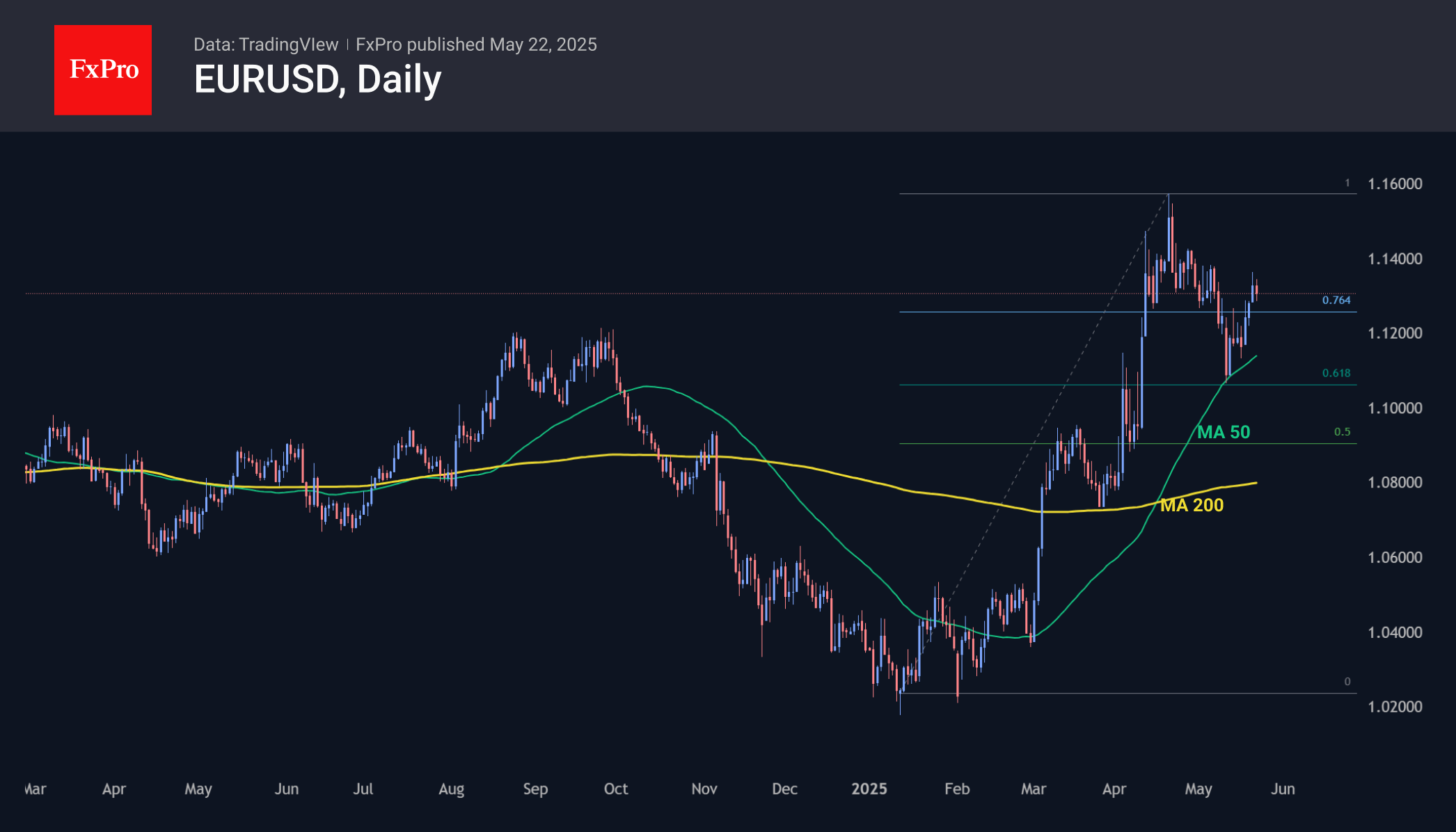 That is, the EURUSD’s corrective pullback since late April could be just a tactical consolidation of forces before a further breakout with a long-term target at 1.25.