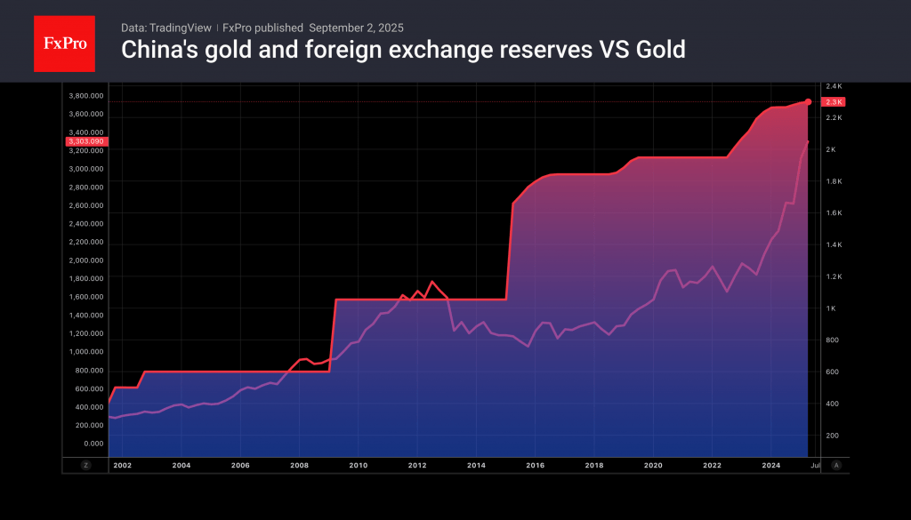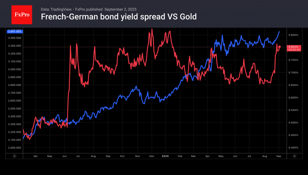 Another reason to buy gold is the growth of political risks in France. The right-wing National Rally party will not be satisfied with François Bayrou’s government’s resignation and is set on holding early parliamentary elections. Growing uncertainty in Europe is boosting demand for gold.