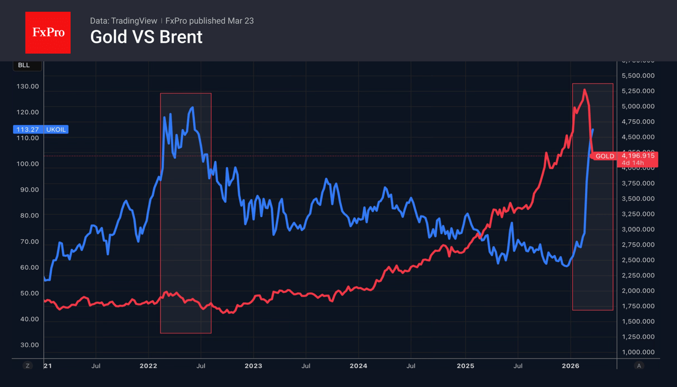Gold has been the main casualty of the conflict in the Middle East, losing around 14% of its value so far. Gold is considered a safe-haven and a hedge against inflation, but recent geopolitics has increased inflation risks, pushing up the likelihood of rate hikes, not cuts, as before March. From another angle, Gold simply failed to pass the safe-haven test, falling victim to speculative trading. The rapid rise in the precious metal’s price in 2025 and early 2026 led to an overcrowded market, and now the conflict has burst the inflated bubble.