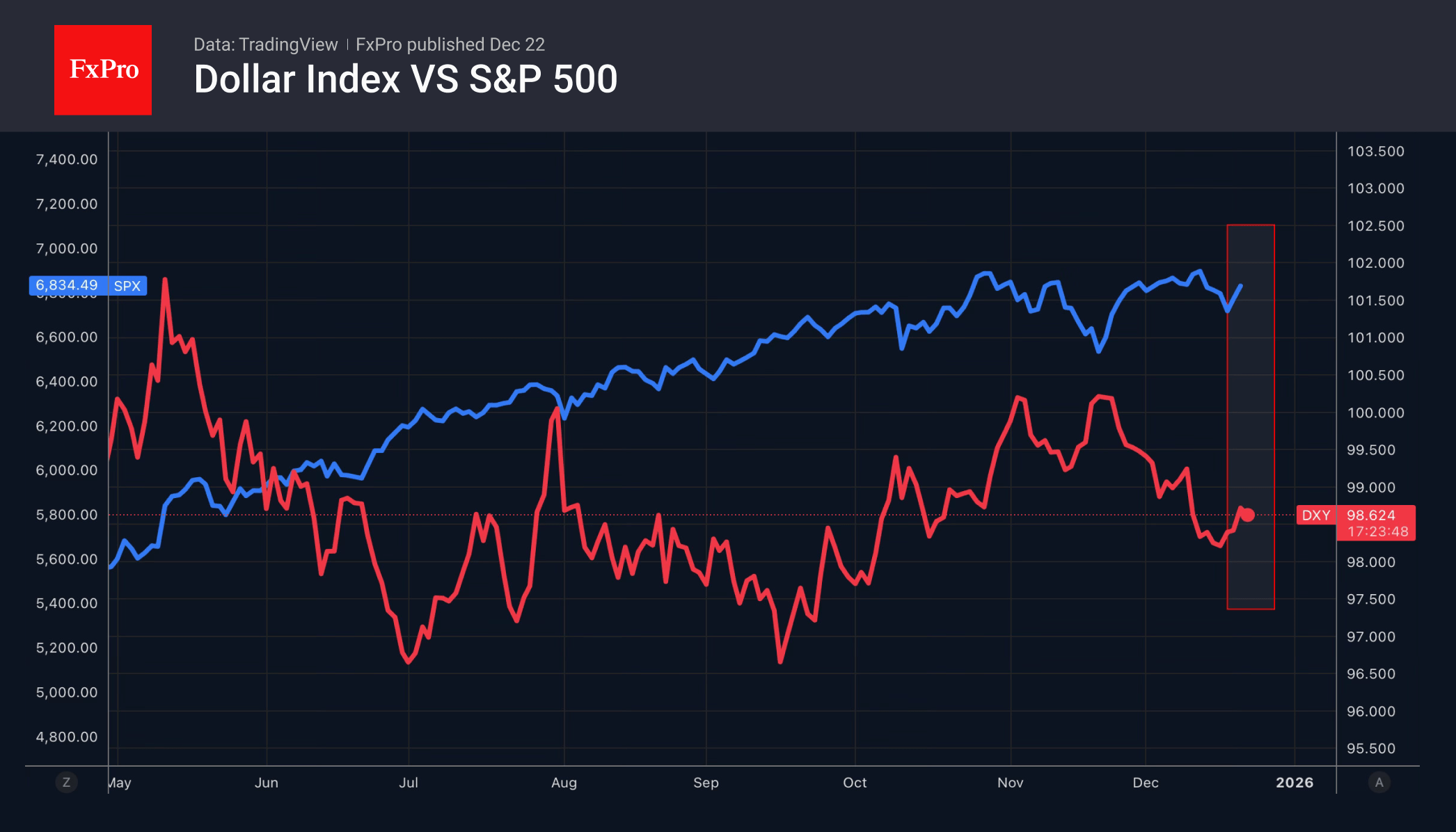 Markets await Christmas, central banks await data. As expected, the Bank of Japan raised its overnight rate to 0.75%, the highest level in three decades. However, the yen weakened sharply against major global currencies due to the implementation of the ‘buy the rumour, sell the fact’ principle and the BoJ’s reluctance to use hawkish rhetoric. Kazuo Ueda noted that there is room to continue the normalisation cycle, but further actions by the regulator will depend on data.