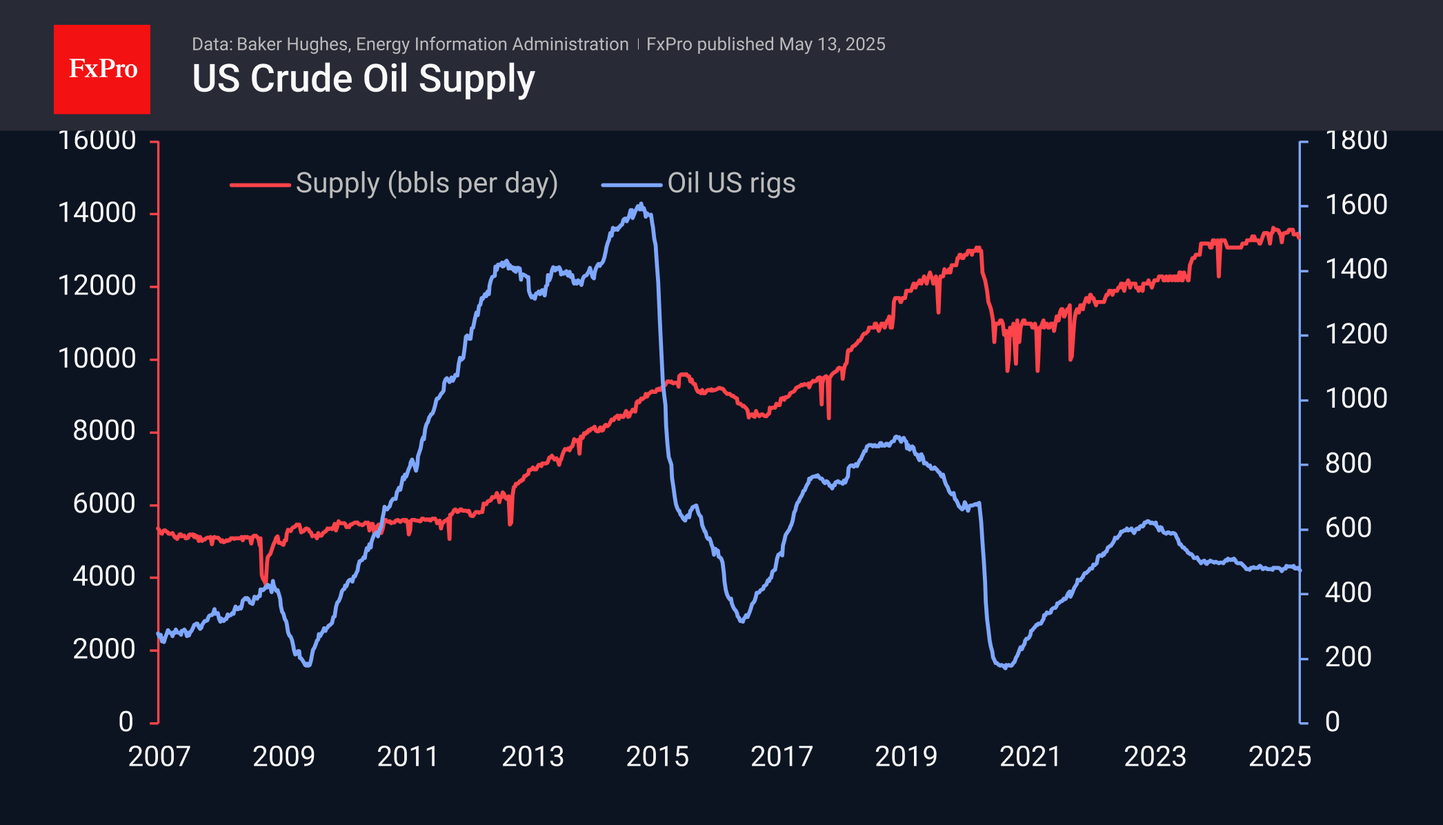 Weekly data from the US supports the optimistic approach. Over the past fortnight, the number of active oil drilling rigs has fallen to 474 from 483. This decline is due to oil producers reacting to the decline in oil prices to 4-year lows. This was also evidenced by a slight decline in production to 13.37 million bpd from 13.46 million bpd previously.