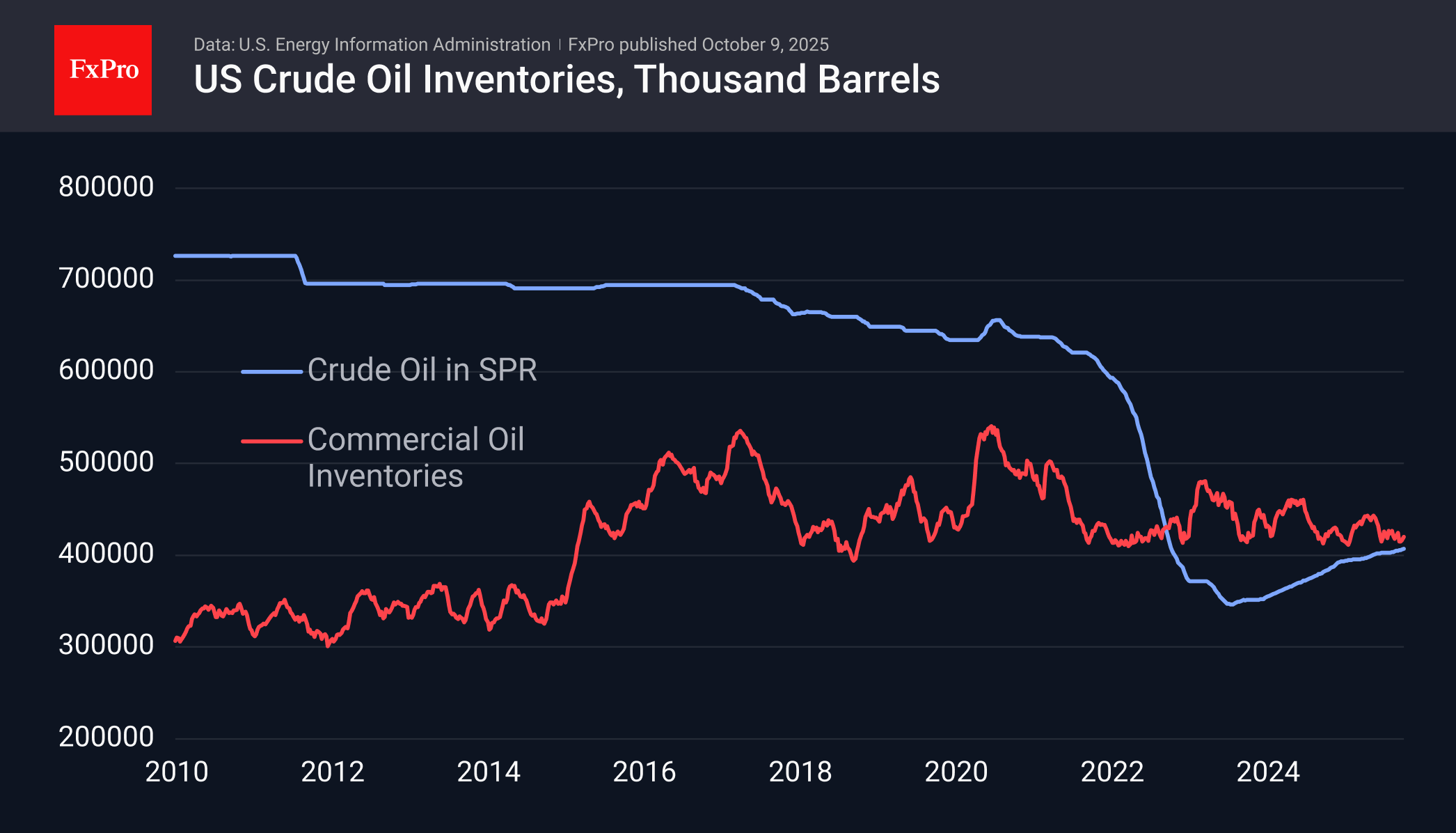 Despite a 5.5-million-barrel increase in US commercial inventories over the past two weeks, inventories stay at the lower end of the range seen over the past decade, leaving considerable room for growth. The same can be said for the strategic reserve, which holds nearly 40% less oil than it did five years ago, before the start of the active sell-off.