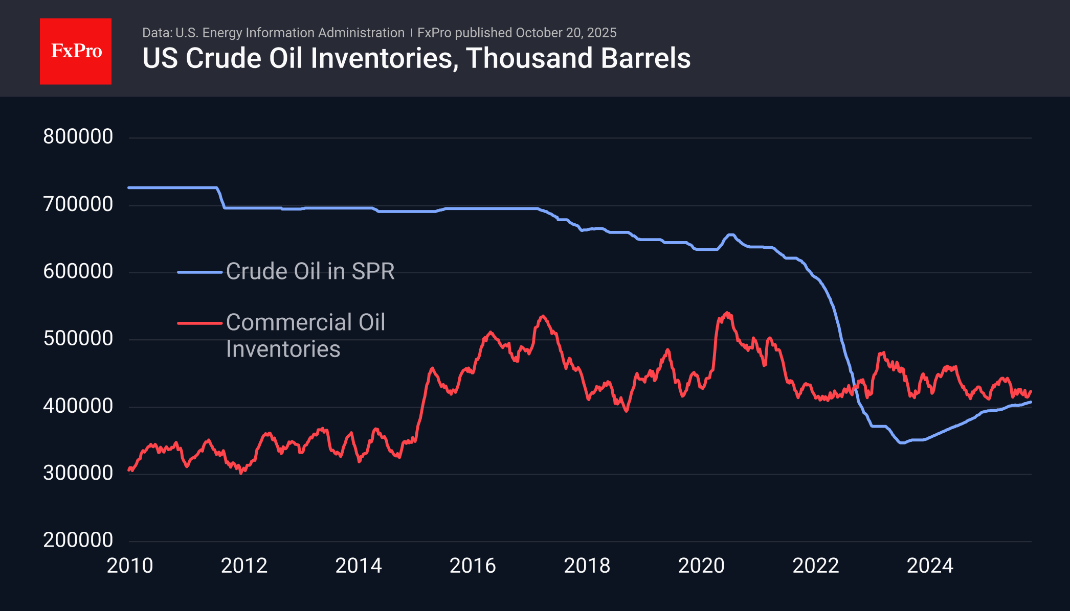 Inventory figures are a stabilising factor. Commercial inventories in the US are at the lower end of the range for the last decade, but they were about the same in January 2020, and six months later, this figure set a new record. However, without a collapse in consumption, such rapid growth should not be expected. The US government may also move to more actively rebuild the strategic petroleum reserve sold off in 2022.