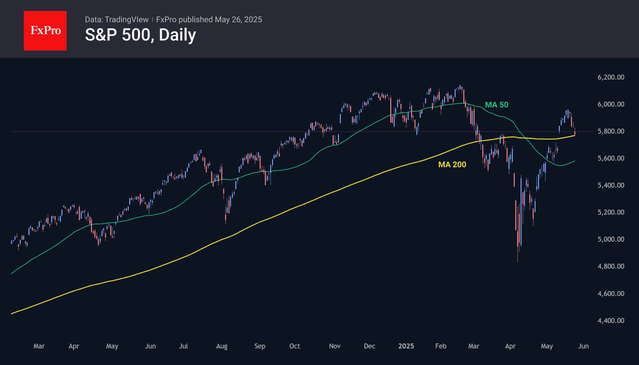 The U.S. president said he delayed imposing 50% tariffs on EU imports after a call from the president of the European Commission. On this news, S&P500 index futures are adding nearly 1.5% on Monday, pushing back from the 200-day moving average as support. Unlikely to be intentional, but Trump has helped in the formation of an important bullish pattern, keeping the key US market index above the psychologically important curve that separates a rising market from a falling market.