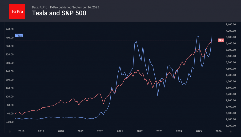 Along with expectations of Fed rate cuts, the S&P 500 is being supported by positive news from large companies, such as Alphabet’s court victory, Oracle’s multi-billion dollar deals, and Elon Musk’s $1 billion purchase of Tesla shares.