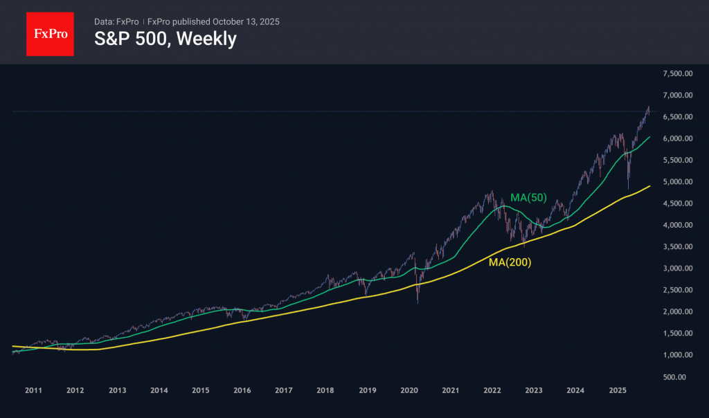 We also note that the S&P 500 is trading at a significant distance from its 200-week moving average, near which the market has ended its declines over the past 14 years since 2011, touching it or turning around within 2-5% of it. This contrasts sharply with the current situation, where the S&P 500 is almost 25% above this line.