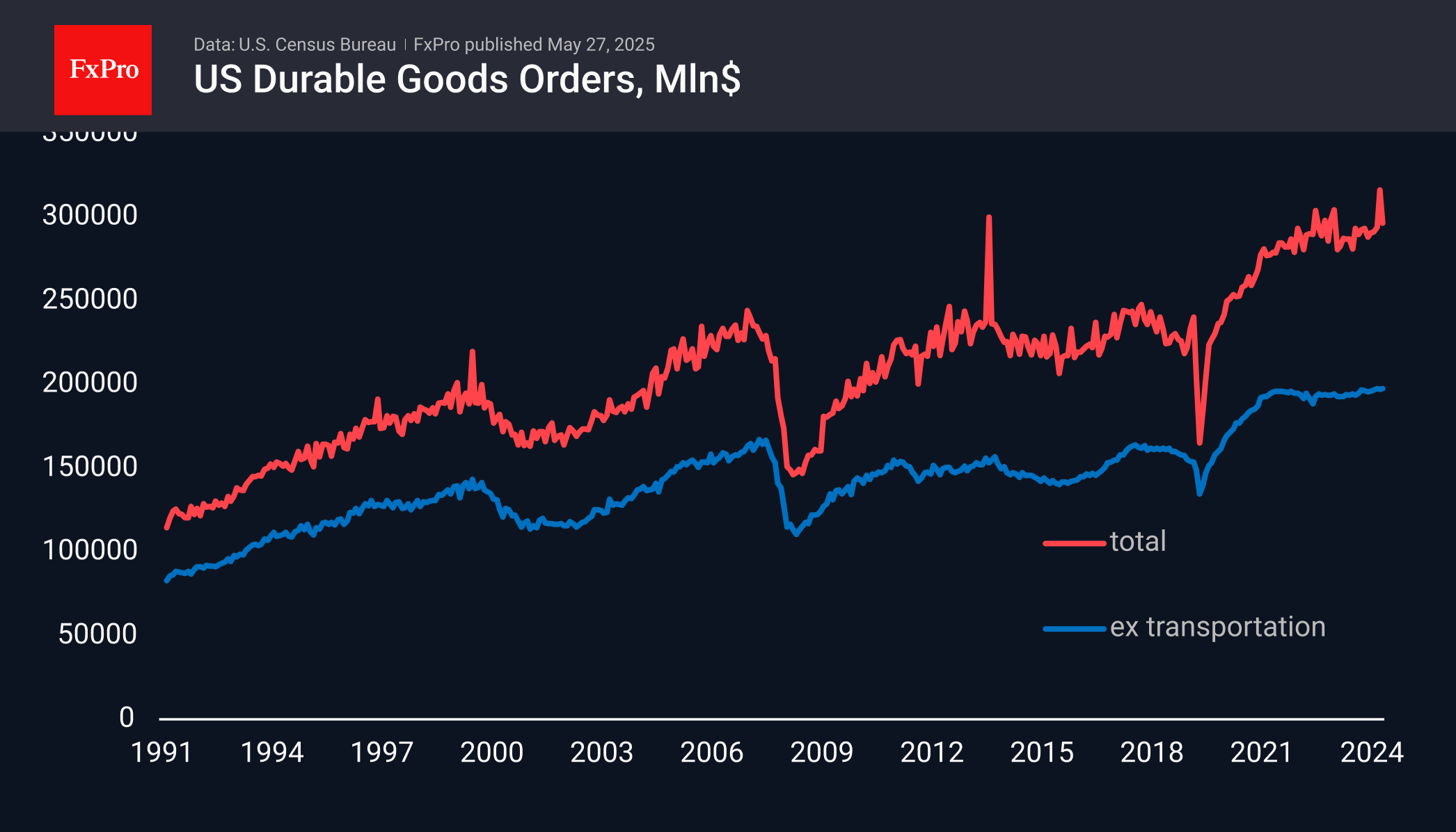 In the short term, the current report is relatively positive for demand for US assets, including the dollar, coming in above expectations. However, in the medium term, it is worth paying attention to the decline in orders expressed in real prices. This may indicate a growing threat of stagnation, if not contraction, of the US economy, bringing the Fed rate cut closer.