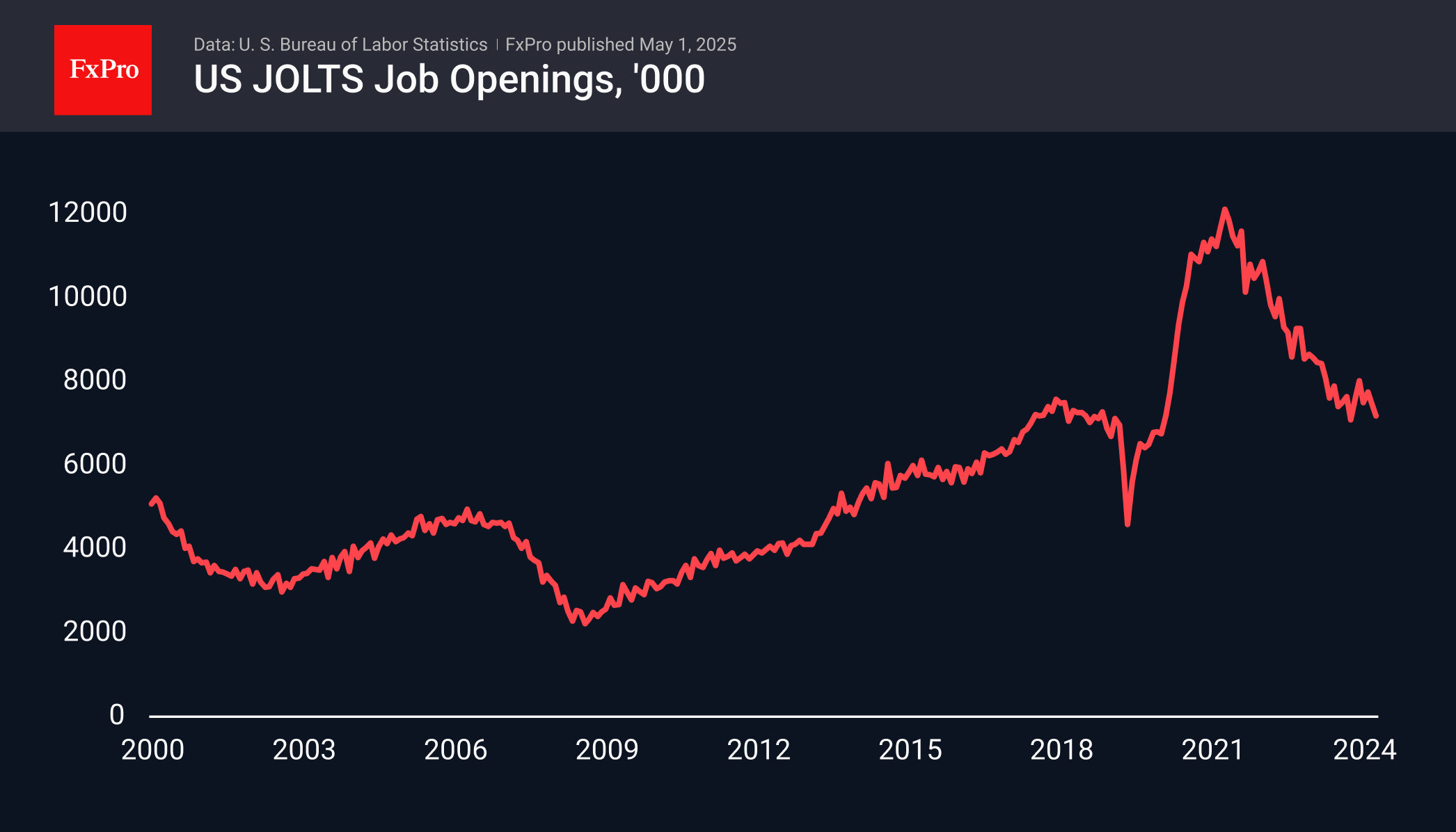 The US jobs market is showing some weakness, with Tuesday’s data revealing the lowest number of new job openings since last September. This continues a normalisation trend after the remote work boom drove vacancies to record highs.