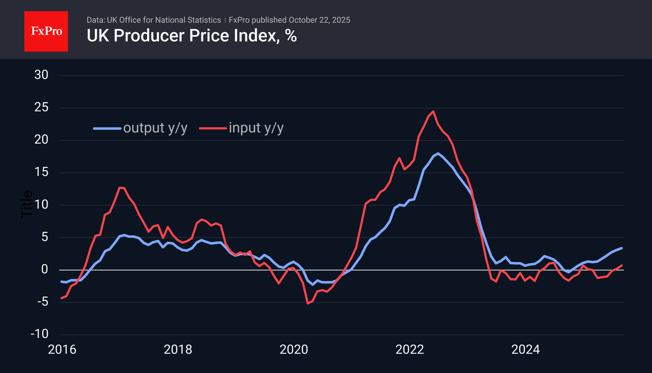 After a long pause, the UK published a full set of inflation indicators, which overall turned out to be softer than expected, increasing pressure on the pound and allowing the stock market to gain against the tide.