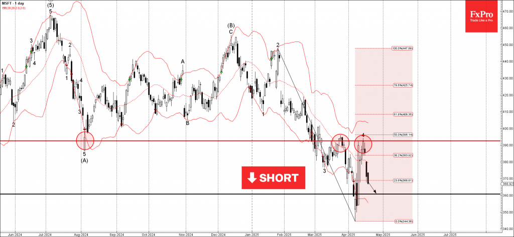 Given the continuation of the Swiss franc sales seen across the FX markets over the last trading sessions, AUDCHF can be expected to rise further toward the next resistance level 0.5870 (target for the completion of the active short-term ABC correction ii).