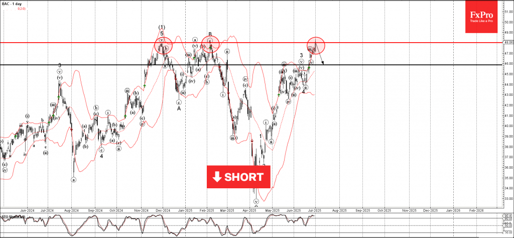 Bank of America recently reached the powerful multi-month resistance level 48.00, which has been reversing the price from last November.