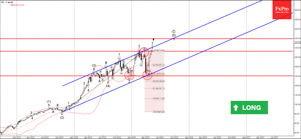 The breakout of this resistance zone accelerated the active impulse wave 3 of the intermediate impulse wave (3) from the start of April.