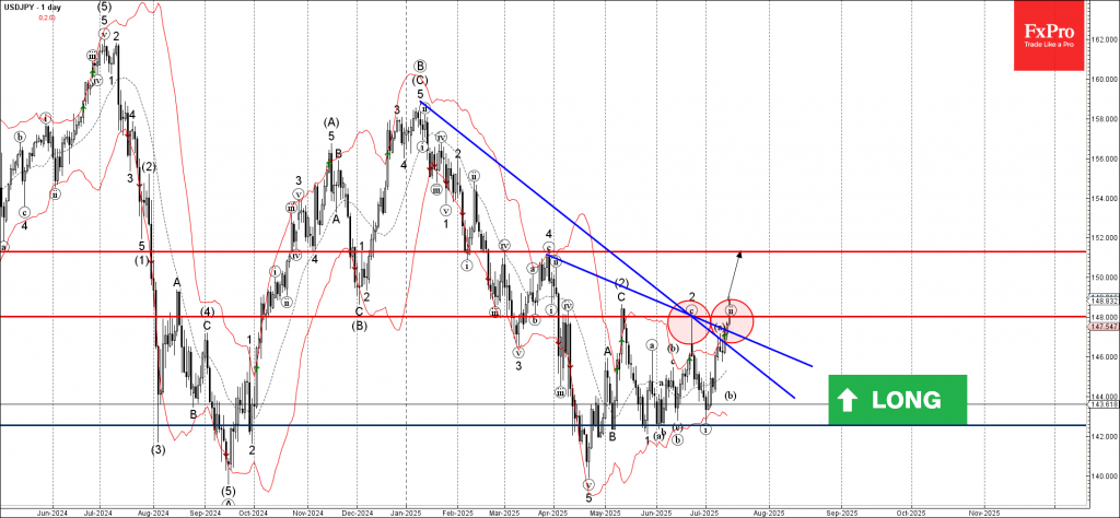 Boeing recently reversed down from the resistance area set between the key resistance level 196.34 (former support from February and March) standing near the 50% Fibonacci correction of the downward impulse from January.