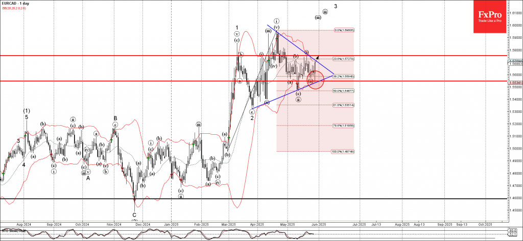 EURCAD currency pair can be expected to rise to the next resistance level 1.5755 (top of the previous impulse wave i).