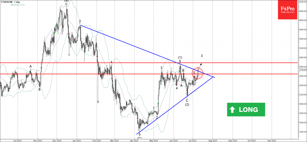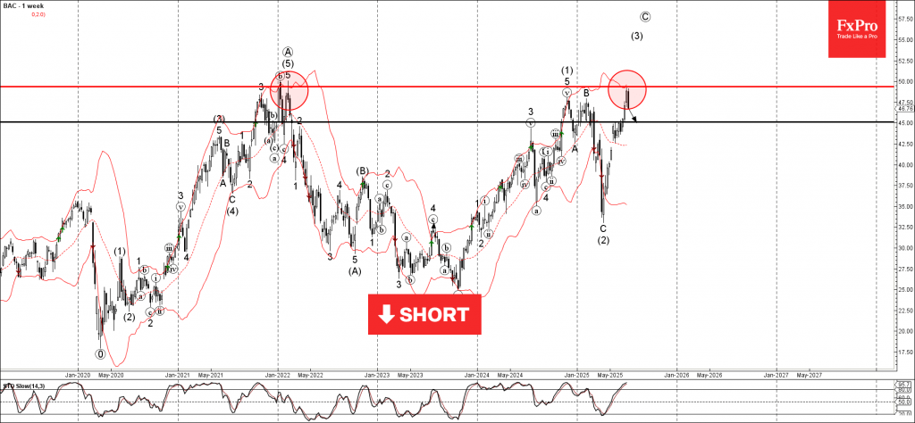 Given the overbought daily Stochastic – EURUSD is likely to fall further toward the next support level 1.2060 (low of the previous minor correction (ii)).
