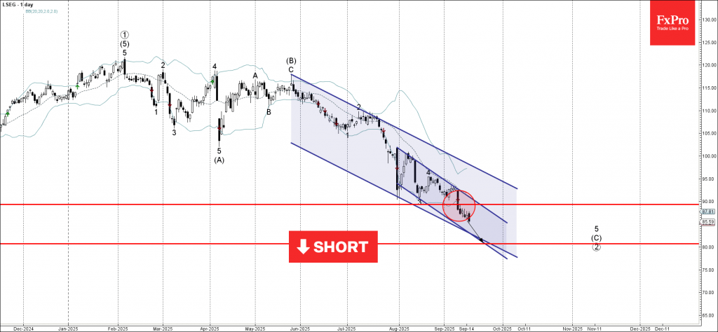 LSEG under the bearish pressure after the earlier breakout of the support level 90.00 (which has been reversing the price from July).