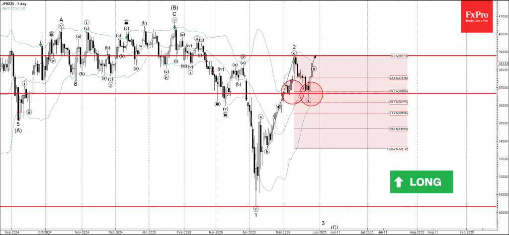 Nikkei 225 index can be expected to rise to the next resistance level 38800,00, top of the previous minor correction 2.
