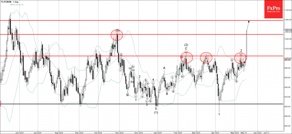 The breakout of the resistance level 1005.00 increased the bullish pressure on Platinum.