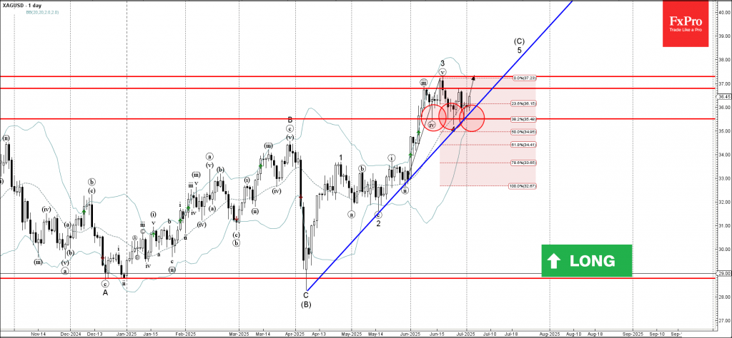 Given the clear daily uptrend, Silver can be expected to rise further to the next resistance level 36.80 – the breakout of which can lead to further gains toward 37.30.