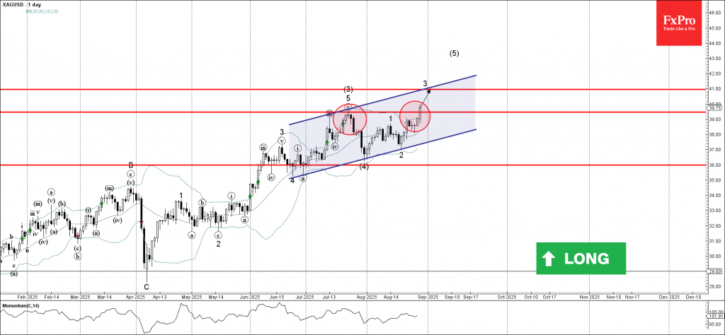 Given the strong daily uptrend, Silver can be expected to rise to the next resistance level 41.00, target price for the completion of the active impulse wave 3.