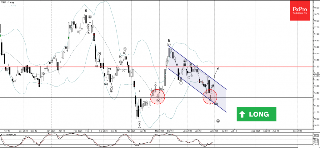 Trip can be expected to rise to the next resistance level 14.50 (which reversed the previous waves ii and (2) at the start of June).
