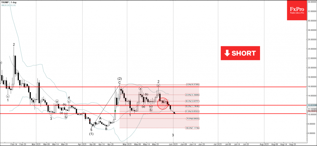 Trump Coin can be expected to fall to the next round support level 10.00 (which stopped the previous wave 1 at the start of May).