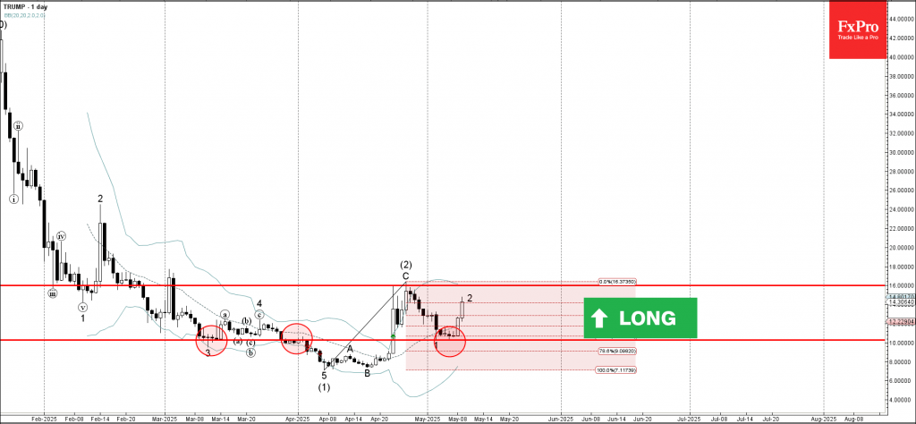 Trump Coin can be expected to rise to the next resistance level 16.000 (which reversed the previous correction (2) at the end of April).