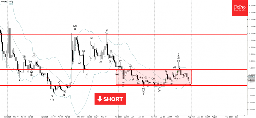 Given the clear daily downtrend, Trump cryptocurrency can be expected to fall to the next round support level 8.4380 (lower border of the active price range).
